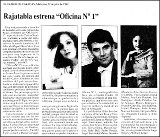 obra se estrenó en junio de 1992 en la sala de la Casa del Artista, las críticas